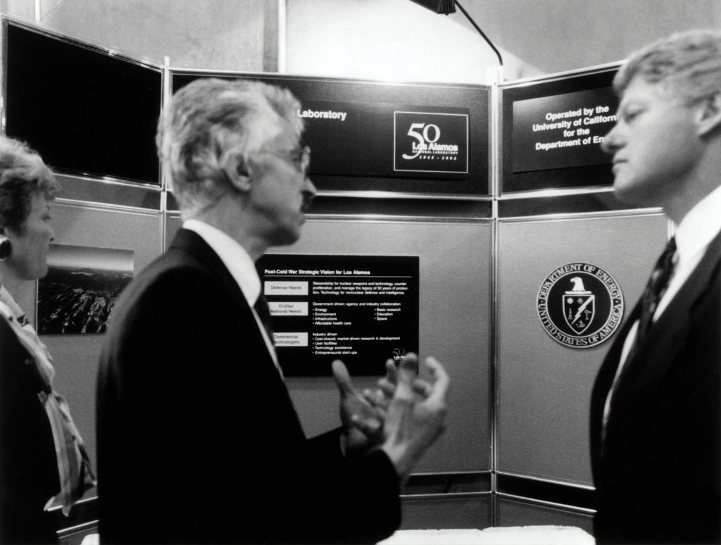 Sigfried Hecker, Direktor des Los Alamos National Laboratory mit Sekretärin Hazel O’Leary und Präsident William Clinton (Fotorechte: History in HD – Unsplash)