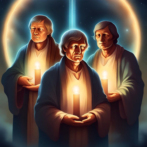 (Das idealistische „Trio“ – gemäß KI drei Gestalten im Dunklen.)