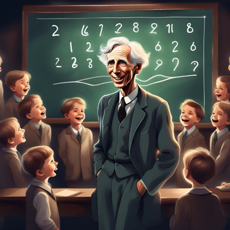 (Russell erläutert jungen Zeitgenossen die „Mathematik“ Hegels – wie es sich die KI vorstellt.)