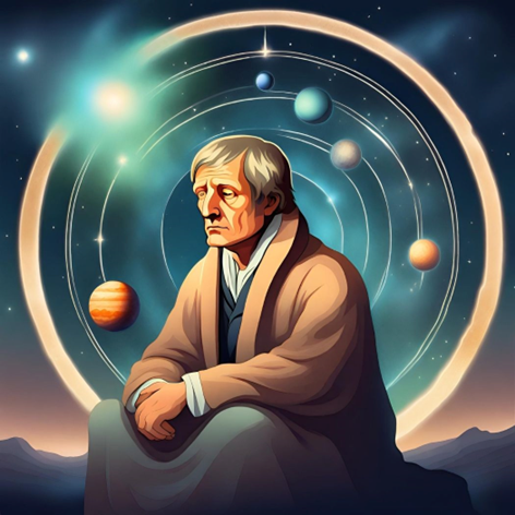 (Hegel versucht sich als Astro-Physiker – so illustriert die KI sein Scheitern.)