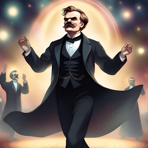 (So stellt sich KI den tanzenden Nietzsche vor.)