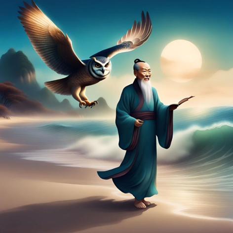 (So stellt sich KI einen in den Mandarinen verwandelten Kant und dessen Eule der Weisheit vor.)
