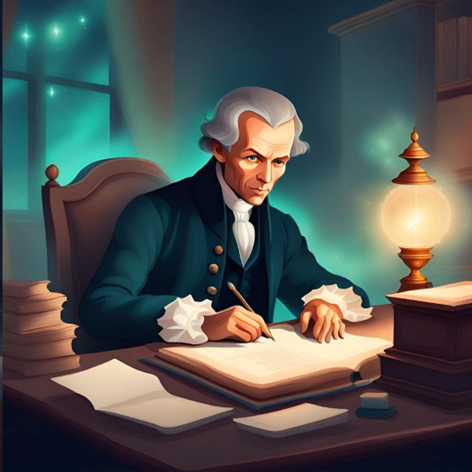 (KI symbolisiert den Augenblick: Kant gibt seine Erklärung ab.)